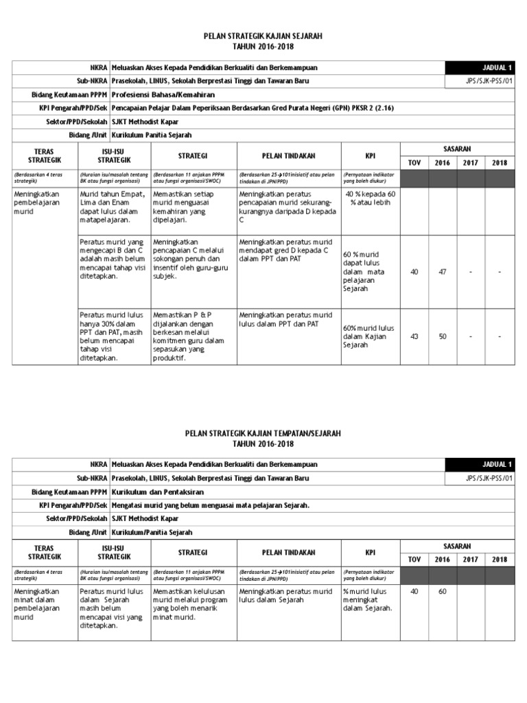 Pelan Strategik Sejarah 2016 2018 Pdf